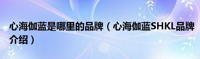 大家好,小源来为大家解答以上问题。心海伽蓝是哪里的品牌,心海伽蓝SHKL品牌介绍很多人还不知道,现在让我们一起来看看吧!