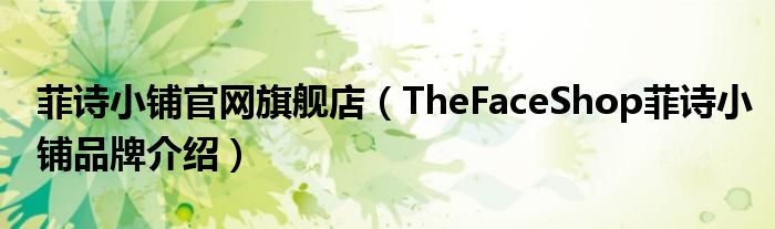 大家好,小源来为大家解答以上问题。菲诗小铺官网旗舰店,TheFaceShop菲诗小铺品牌介绍很多人还不知道,现在让我们一起来看看吧!
