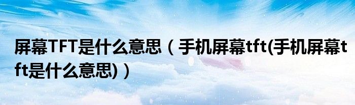 大家好,小常来为大家解答以上问题。屏幕TFT是什么意思,手机屏幕tft(手机屏幕tft是什么意思)很多人还不知道,现在让我们一起来看看吧!
