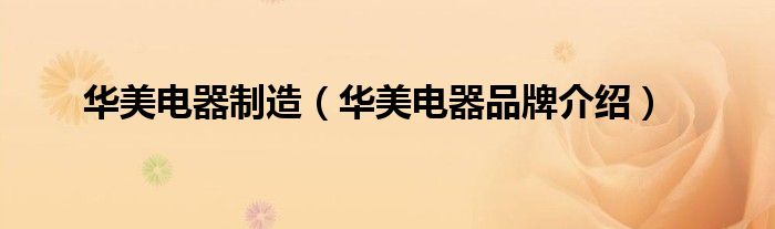 大家好,小源来为大家解答以上问题。华美电器制造,华美电器品牌介绍很多人还不知道,现在让我们一起来看看吧!