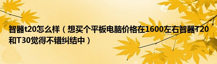 1,想买个平板电脑价格在1600左右智器T20和T30觉得不错纠结中 :智器T20是16:10的屏幕, 如果主要上网的话, 建议选择4:3的屏幕, 不知道你要的是多大的尺寸