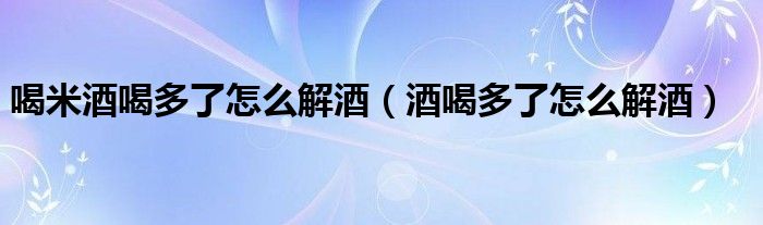 喝米酒喝多了怎么解酒(酒喝多了怎么解酒)