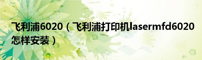 1,飞利浦打印机lasermfd6020怎样安装 :按照说明书的方法连接安装~