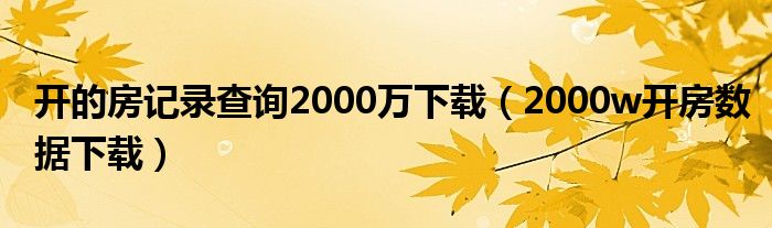 大家好,来宝来为大家解答以下问题,开的房记录查询2000万下载,2000w开房数据下载很多人还不知道,今天让我们一起来看看吧!