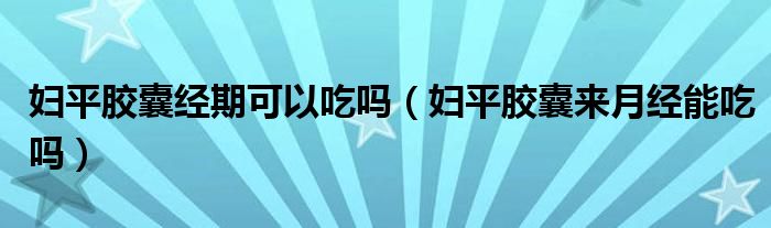 大家好,linda来为大家解答以上的问题。妇平胶囊经期可以吃吗,妇平胶囊来月经能吃吗很多人还不知道,现在让我们一起来看看吧!