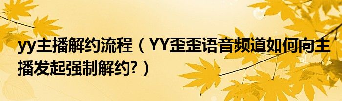 大家好,今天小悦来为大家解答以上问题。yy主播解约流程,YY歪歪语音频道如何向主播发起强制解约?很多人还不知道,现在让我们一起来看看吧!