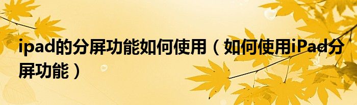 大家好,今天小悦来为大家解答以上问题。ipad的分屏功能如何使用,如何使用iPad分屏功能很多人还不知道,现在让我们一起来看看吧!