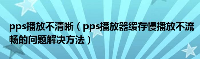 大家好,今天小悦来为大家解答以上问题。pps播放不清晰,pps播放器缓存慢播放不流畅的问题解决方法很多人还不知道,现在让我们一起来看看吧!