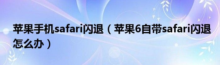 大家好,今天小悦来为大家解答以上问题。苹果手机safari闪退,苹果6自带safari闪退怎么办很多人还不知道,现在让我们一起来看看吧!