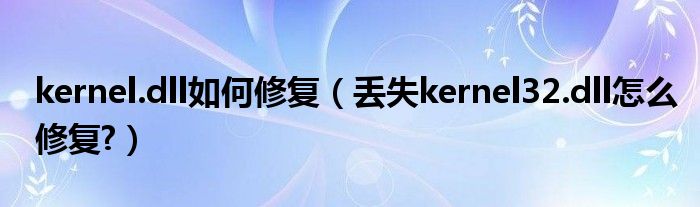 大家好,今天小悦来为大家解答以上问题。kernel.dll如何修复,丢失kernel32.dll怎么修复?很多人还不知道,现在让我们一起来看看吧!