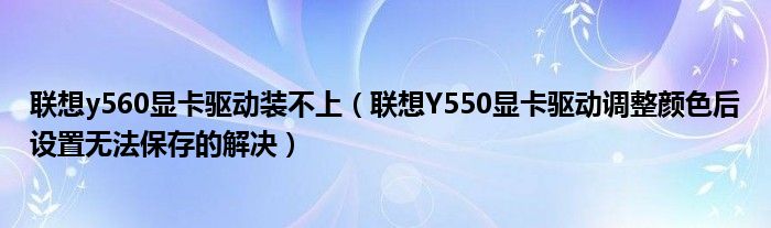 大家好,今天小悦来为大家解答以上问题。联想y560显卡驱动装不上,联想Y550显卡驱动调整颜色后设置无法保存的解决很多人还不知道,现在让我们一起来看看吧!