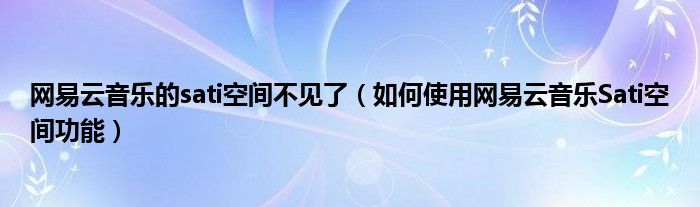大家好,小太来为大家解答以上问题。网易云音乐的sati空间不见了,如何使用网易云音乐Sati空间功能很多人还不知道,现在让我们一起来看看吧!