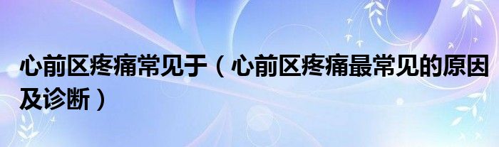 大家好,linda来为大家解答以上的问题。心前区疼痛常见于,心前区疼痛最常见的原因及诊断很多人还不知道,现在让我们一起来看看吧!