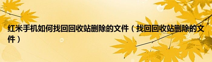 大家好,雨雨来为大家解答以上问题,红米手机如何找回回收站删除的文件,找回回收站删除的文件很多人还不知道,现在让我们一起来看看吧!