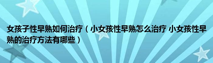 1、小女孩性早熟的治疗主要是通过病因识别和个体化治疗。