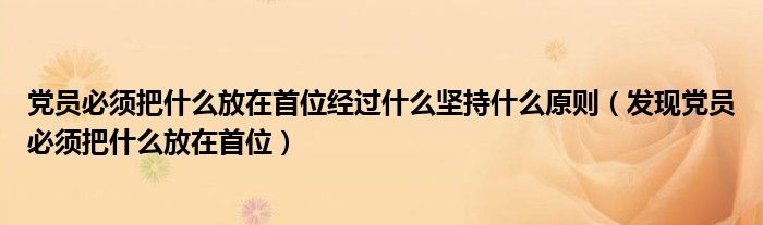 大家好,小晋来为大家解答以下问题,关于党员必须把什么放在首位经过什么坚持什么原则,发现党员必须把什么放在首位很多人还不知道,今天让我们一起来看看吧!