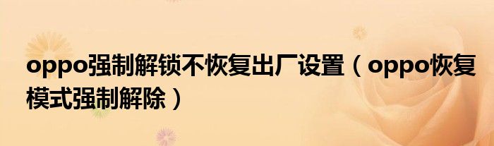 oppo强制解锁不恢复出厂设置(oppo恢复模式强制解除)