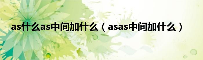 大家好,小晋来为大家解答以下问题,关于as什么as中间加什么,asas中间加什么很多人还不知道,今天让我们一起来看看吧!