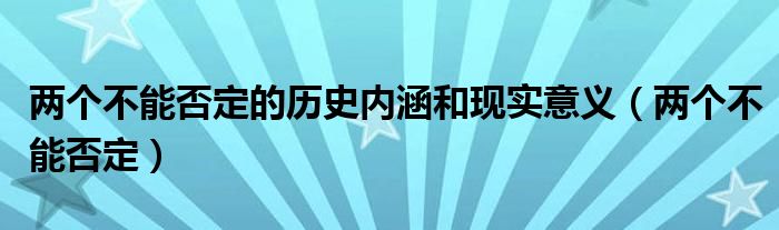 大家好,小晋来为大家解答以下问题,关于两个不能否定的历史内涵和现实意义,两个不能否定很多人还不知道,今天让我们一起来看看吧!