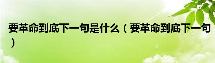 大家好,小晋来为大家解答以下问题,关于要革命到底下一句是什么,要革命到底下一句很多人还不知道,今天让我们一起来看看吧!
