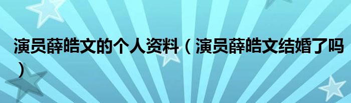 大家好,小晋来为大家解答以下问题,关于演员薛皓文的个人资料,演员薛皓文结婚了吗很多人还不知道,今天让我们一起来看看吧!