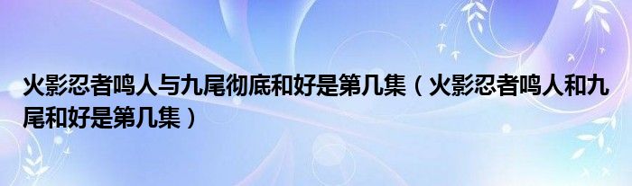 大家好,小晋来为大家解答以下问题,关于火影忍者鸣人与九尾彻底和好是第几集,火影忍者鸣人和九尾和好是第几集很多人还不知道,今天让我们一起来看看吧!