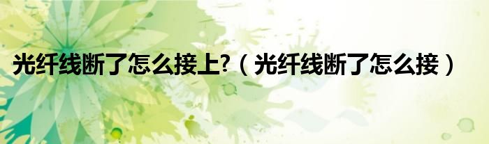 大家好,小晋来为大家解答以下问题,关于光纤线断了怎么接上?,光纤线断了怎么接很多人还不知道,今天让我们一起来看看吧!