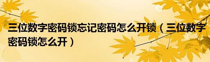 大家好,小晋来为大家解答以下问题,关于三位数字密码锁忘记密码怎么开锁,三位数字密码锁怎么开很多人还不知道,今天让我们一起来看看吧!