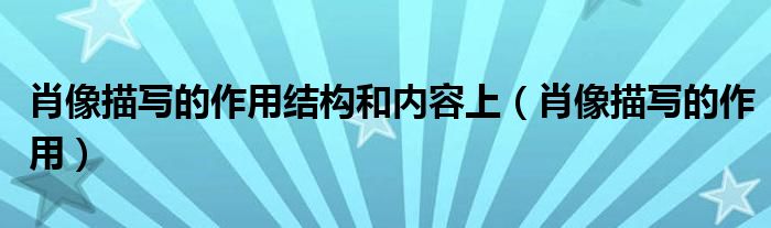 大家好,小晋来为大家解答以下问题,关于肖像描写的作用结构和内容上,肖像描写的作用很多人还不知道,今天让我们一起来看看吧!