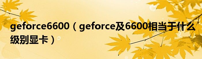 大家好,小常来为大家解答以上问题。geforce6600,geforce及6600相当于什么级别显卡很多人还不知道,现在让我们一起来看看吧!