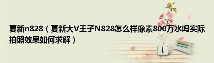 1,夏新大V王子N828怎么样像素800万水吗实际拍照效果如何求解:拍照还是可以的,这样的价位,也别太高的要求,该款机子性能非常稳定,性价比极高。