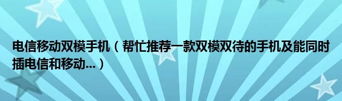 大家好,小常来为大家解答以上问题。电信移动双模手机,帮忙推荐一款双模双待的手机及能同时插电信和移动...很多人还不知道,现在让我们一起来看看吧!