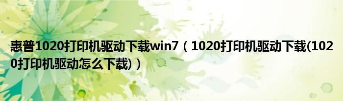 1.中国HP官网:hp。。cn /apps/Lookup?h_lang=zh-hans&h_cc=cn&cc=cn&h_page=hp&lang=zh-hans&h_client=S-A-R1093-1&h_pagetype=s-002&h_query=1020&lc=zh-hans&cc=cn可选择系统机器型号下载,1020或者1020plus,在选择电脑相应系统即可。