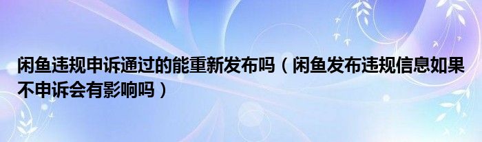大家好,跳跳为你解答以上问题。闲鱼违规申诉通过的能重新发布吗,闲鱼发布违规信息如果不申诉会有影响吗这个问题很多人还不知道,现在让我们一起来看看吧!