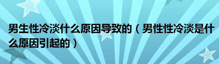1、一般男性性冷淡的常见原因有两个,一个是器质性原因,一个是心理性原因,也就是功能性原因。