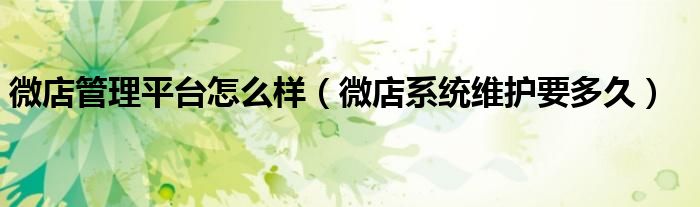 大家好,跳跳为你解答以上问题。微店管理平台怎么样,微店系统维护要多久这个问题很多人还不知道,现在让我们一起来看看吧!