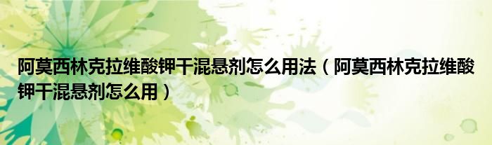 大家好,linda来为大家解答以上的问题。阿莫西林克拉维酸钾干混悬剂怎么用法,阿莫西林克拉维酸钾干混悬剂怎么用很多人还不知道,现在让我们一起来看看吧!