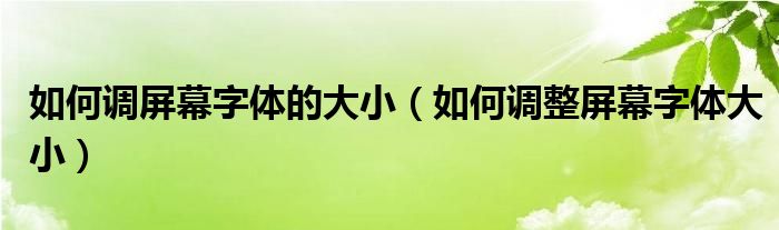 关于如何调屏幕字体的大小,如何调整屏幕字体大小这个很多人还不知道,今天菲菲来为大家解答以上的问题,现在让我们一起来看看吧!