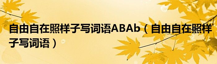 大家好,小晋来为大家解答以下问题,关于自由自在照样子写词语ABAb,自由自在照样子写词语很多人还不知道,今天让我们一起来看看吧!