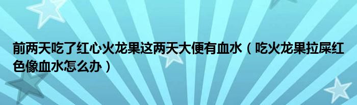 大家好,linda来为大家解答以上的问题。前两天吃了红心火龙果这两天大便有血水,吃火龙果拉屎红色像血水怎么办很多人还不知道,现在让我们一起来看看吧!