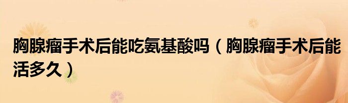 大家好,linda来为大家解答以上的问题。胸腺瘤手术后能吃氨基酸吗,胸腺瘤手术后能活多久很多人还不知道,现在让我们一起来看看吧!