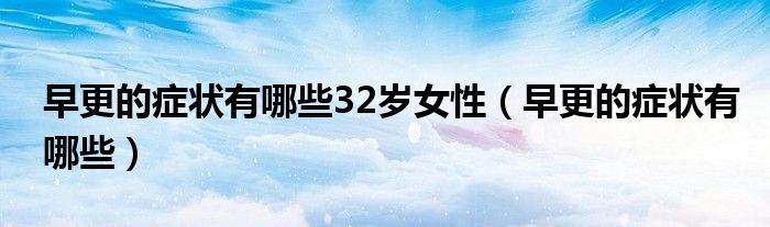 大家好,linda来为大家解答以上的问题。早更的症状有哪些32岁女性,早更的症状有哪些很多人还不知道,现在让我们一起来看看吧!