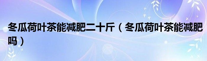 大家好,linda来为大家解答以上的问题。冬瓜荷叶茶能减肥二十斤,冬瓜荷叶茶能减肥吗很多人还不知道,现在让我们一起来看看吧!