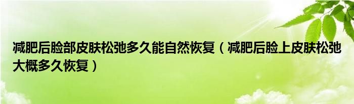 大家好,linda来为大家解答以上的问题。减肥后脸部皮肤松弛多久能自然恢复,减肥后脸上皮肤松弛大概多久恢复很多人还不知道,现在让我们一起来看看吧!