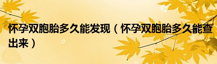 1、双胞胎怀孕的时候,一般在怀孕6-7周b超就能看出来。