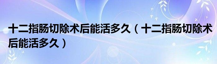 2、十二指肠切除术后,能活多久取决于疾病的性质和严重程度。