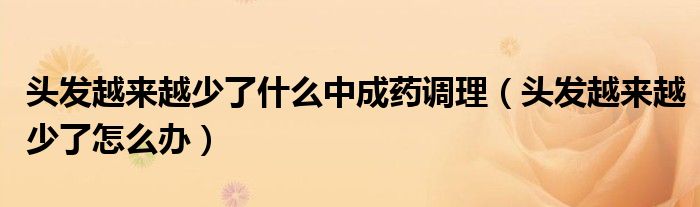 大家好,linda来为大家解答以上的问题。头发越来越少了什么中成药调理,头发越来越少了怎么办很多人还不知道,现在让我们一起来看看吧!