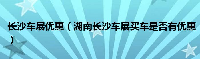 4,长沙车展有优惠吗是什么时候有:买车不是一件小事,一定要慎重小心,买车陷阱无处不在,很多打着团购的旗号在欺骗无辜的购车者,前不久在一个网上报名参加团购,团购的价格却比平时还贵了几百元,但是还是有很多不懂价格的人受骗了,我也参加过车展,车展有时候价格确实比平时便宜些,但是也要看车型,买的好的车型自然价格也不会优惠很多,如果是两个竞品车型在一起,商家自然会放些价格来吸引顾客,这样鹬蚌相争,渔翁得利,总的来说车展选择上选择比单店多些,可以一次把看中的车做一次全面的比较,2015年的车展最近只看到3月5-8日有车展,好像是在红星国际会展中心,我也是在网上搜索到的,请采纳!