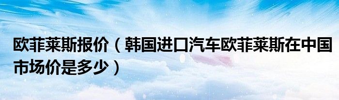 大家好,小常来为大家解答以下问题,对于欧菲莱斯报价,韩国进口汽车欧菲莱斯在中国市场价是多少很多人还不知道,今天让我们一起来看看吧!