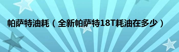 9,大众帕萨特18T 百公里油耗多少 :工信部综合工况6.8,网友油耗平均值9.0,在市区内的平均油耗大概在10-12个左右,跑高速的话大概7-8个左右。另外,看你加的是什么油,而且有没有用燃油宝,好的油大概百公里9-9.5个油,差点的油没有燃油宝要10.5-11个油。市区如果比较堵,可能油耗在12个,这个和车况有关,如果定期保养,换合成机油,轮胎气压正常,踩油门刹车不急的话,差油也可以开到10个油。